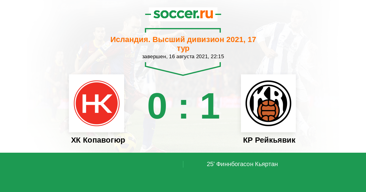 Исландия. Высший дивизион 11.08.2019 ХК Копавогюр Логотип футбольный клуб ХК Копавогюр (Копавогур) 4:1 Логотип футбольный клуб КР Рейкьявик КР Рейкьявик