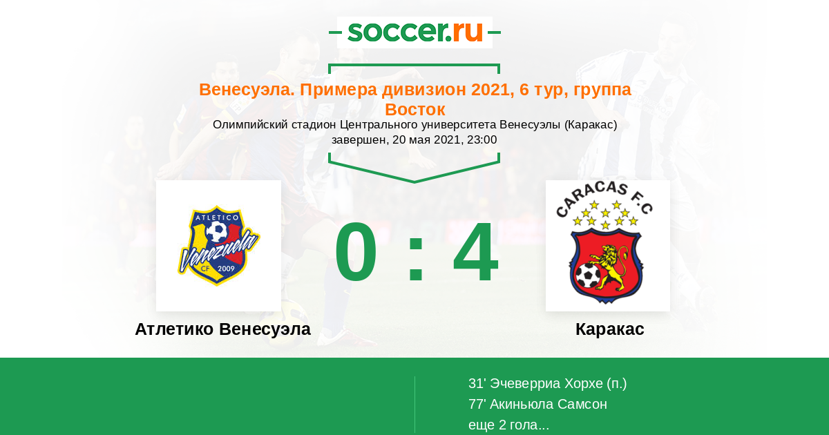 Венесуэла. Примера дивизион 15.10.2021 Каракас Логотип футбольный клуб Каракас 0:3 Логотип Атлетико Венесуэла (Майкуетья) Атлетико Венесуэла