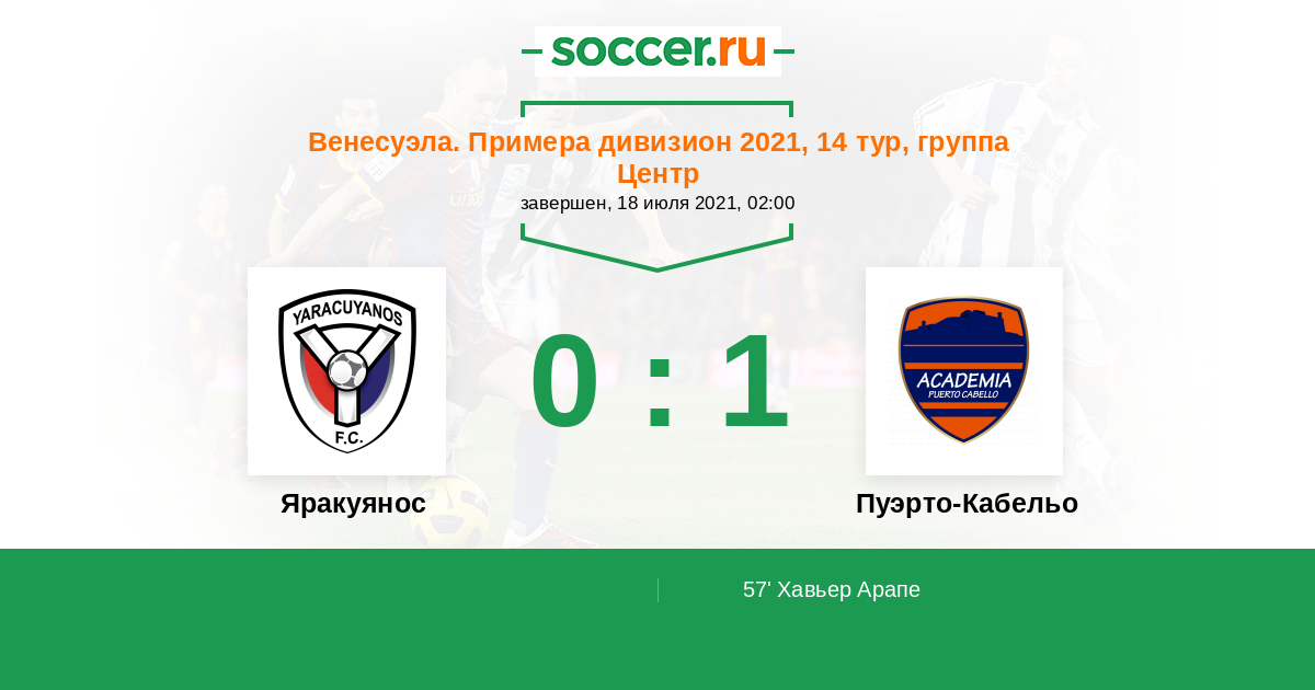 Венесуэла. Примера дивизион 04.09.2021 Пуэрто-Кабельо Логотип футбольный клуб Пуэрто-Кабельо 1:0 Логотип футбольный клуб Яракуянос (Сан Фелипе) Яракуянос