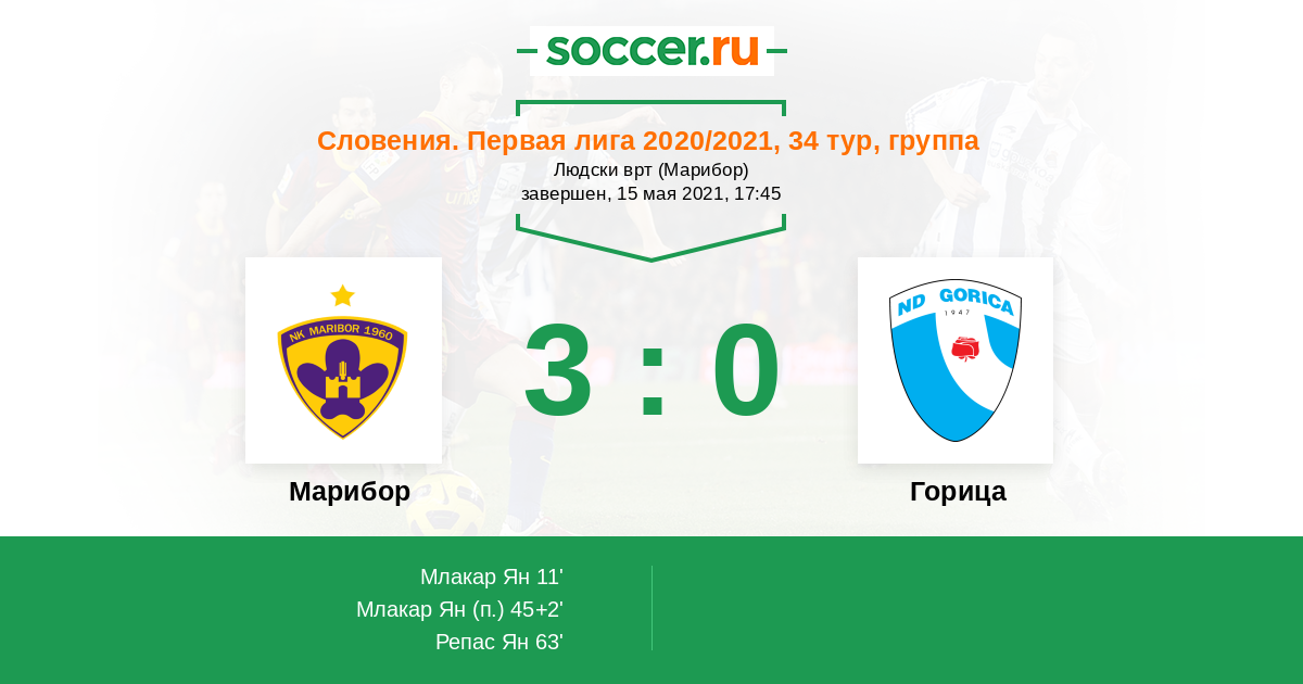 Словения. Первая Лига 06.12.2020 Марибор Логотип футбольный клуб Марибор 3:1 Логотип футбольный клуб Горица (Ново-Горица) Горица