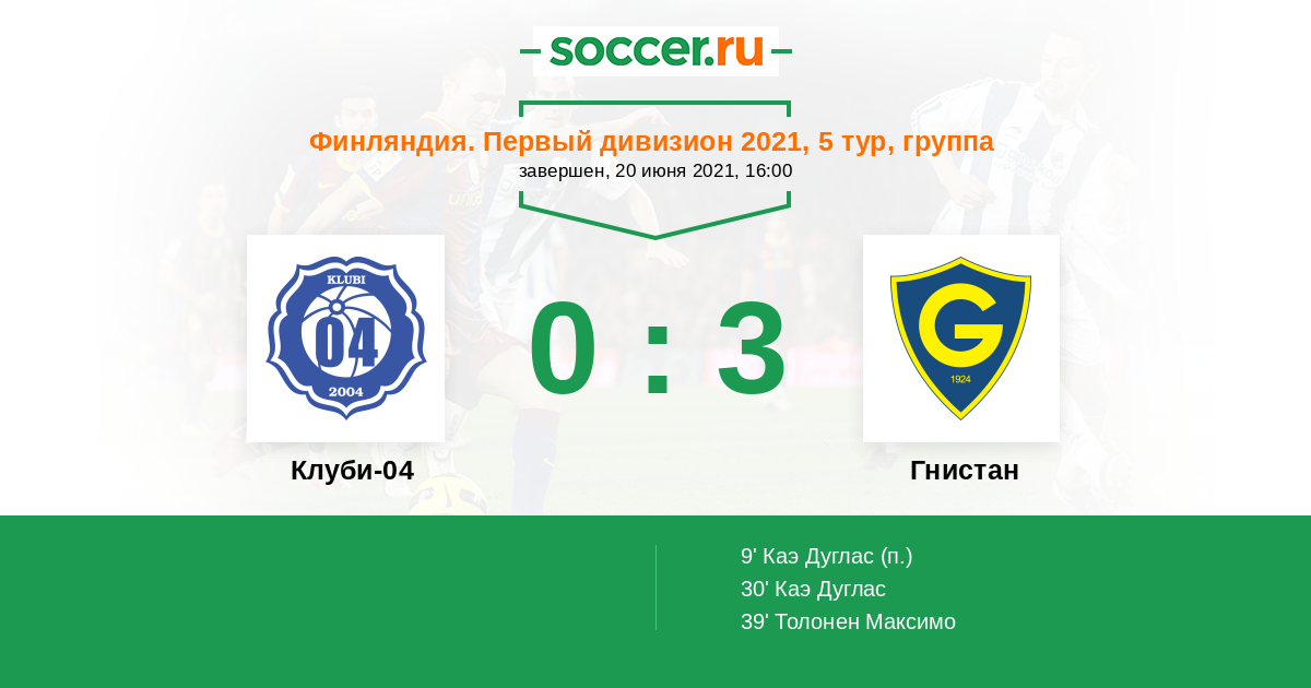 Финляндия. Какконен. Группа A 22.06.2004 Гнистан Логотип футбольный клуб Гнистан (Хельсинки) 1:1 Логотип футбольный клуб Клуби-04 (Хельсинки) Клуби-04