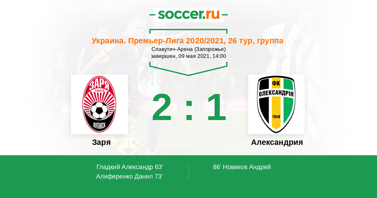 Украина. Премьер-Лига 25.07.2021 Заря Логотип футбольный клуб Заря (Луганск) 0:1 Логотип футбольный клуб Александрия Александрия