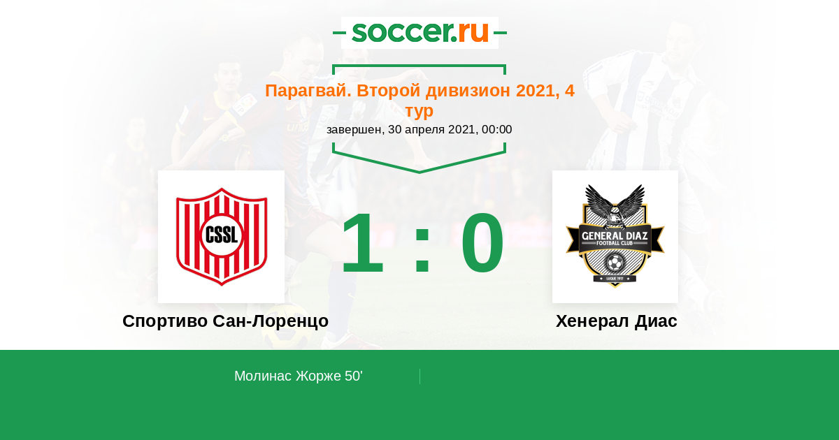 Парагвай. Второй дивизион 31.07.2021 Хенерал Диас Логотип футбольный клуб Хенерал Диас (Луке) 1:0 Логотип футбольный клуб Спортиво Сан-Лоренцо Спортиво Сан-Лоренцо