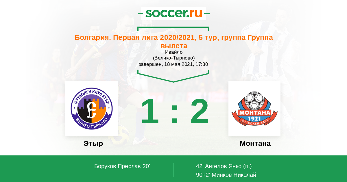 Болгария. Первая лига 06.05.2021 Монтана Логотип футбольный клуб Монтана 1:0 Логотип футбольный клуб Этыр (Велико-Тырново) Этыр