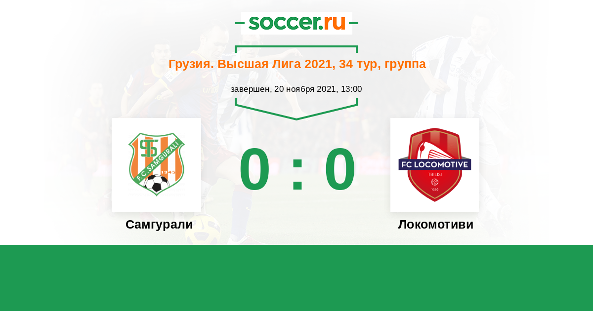 Грузия. Высшая лига 20.09.2021 Локомотиви Логотип футбольный клуб Локомотиви (Тбилиси) 2:2 Логотип футбольный клуб Самгурали (Цхалтубо) Самгурали