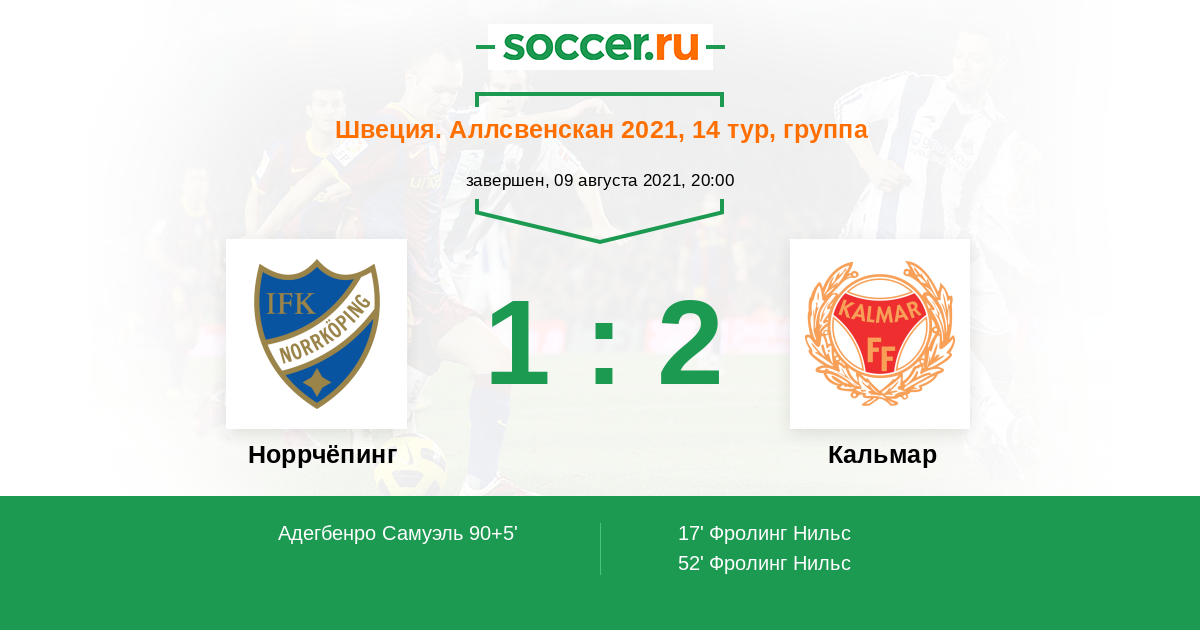Швеция. Аллсвенскан 14.09.2020 Кальмар Логотип футбольный клуб Кальмар 0:2 Логотип футбольный клуб Норрчёпинг Норрчёпинг