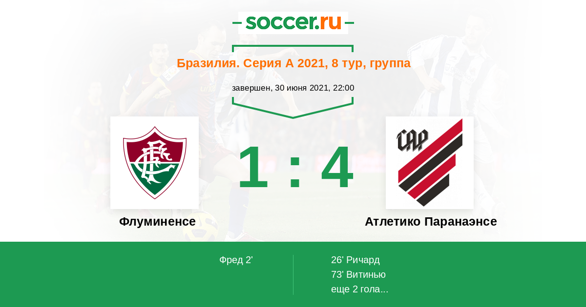 Бразилия. Серия А 15.05.2022 Флуминенсе Логотип футбольный клуб Флуминенсе (Рио-де-Жанейро) 2:1 Логотип футбольный клуб Атлетико Паранаэнсе (Куритиба) Атлетико Паранаэнсе