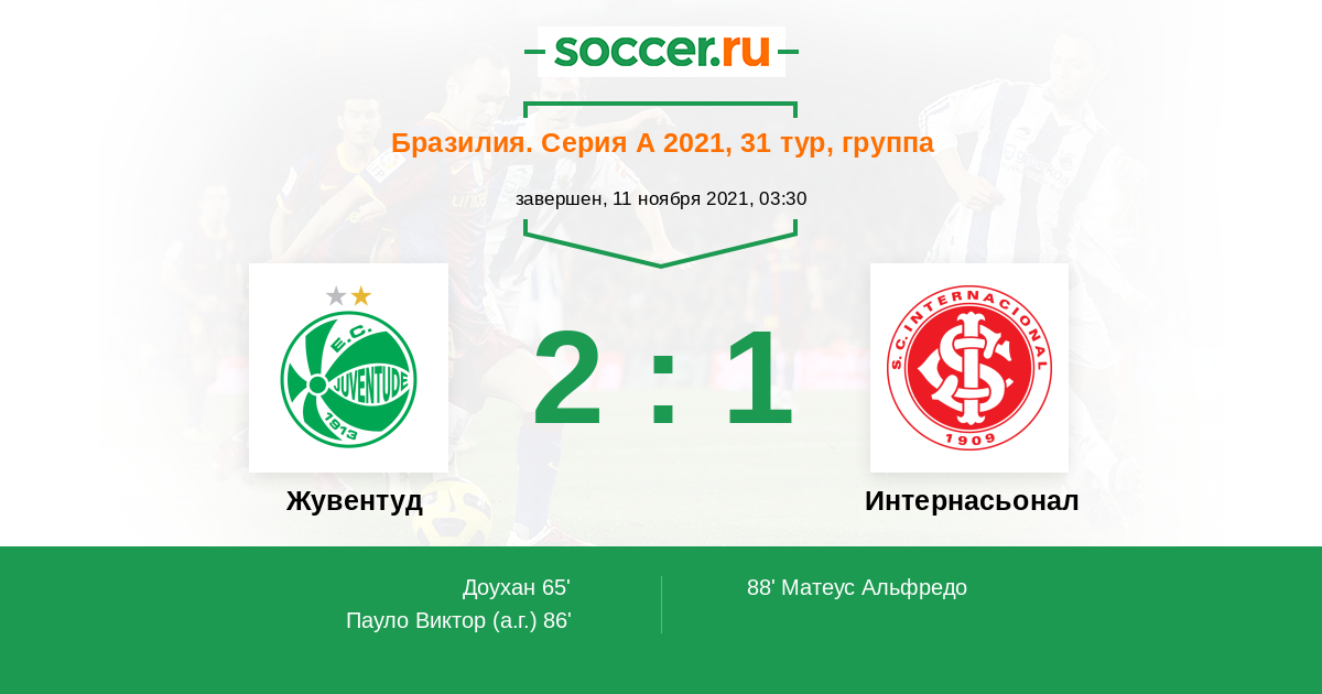 Бразилия. Серия А 19.07.2021 Интернасьонал Логотип футбольный клуб Интернасьонал (Порту-Алегри) 1:0 Логотип футбольный клуб Жувентуд (Кашиас-ду-Сул) Жувентуд