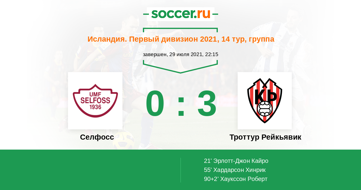 Исландия. Первый дивизион 12.06.2018 Селфосс Логотип футбольный клуб Селфосс 0:1 Логотип футбольный клуб Троттур Рейкьявик Троттур Рейкьявик