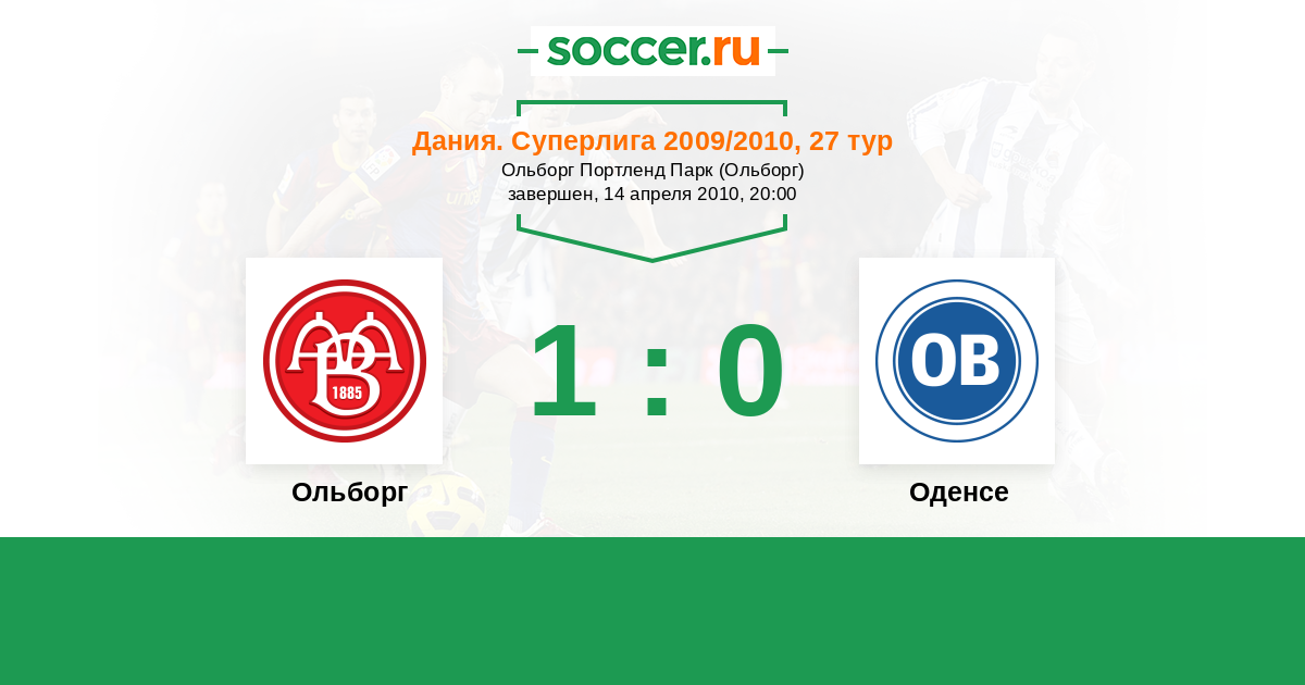 Дания. Суперлига 04.10.2010 Ольборг Логотип футбольный клуб Ольборг 1:2 Логотип футбольный клуб Оденсе Оденсе