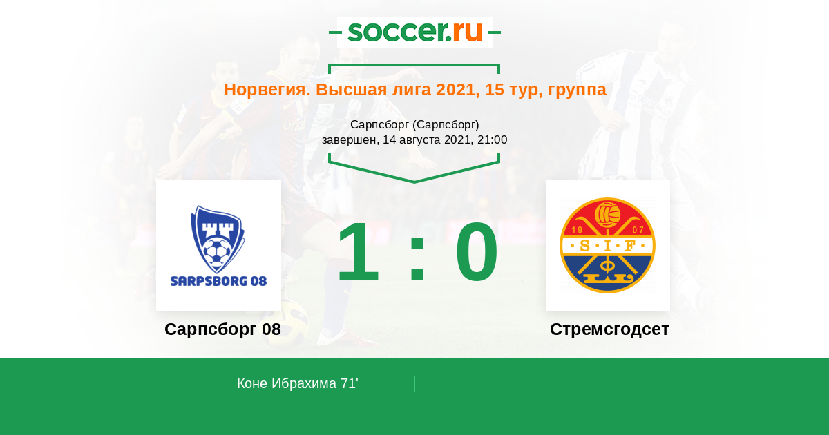 Норвегия. Высшая лига 25.09.2021 Стремсгодсет Логотип футбольный клуб Стремсгодсет (Драммен) 5:0 Логотип футбольный клуб Сарпсборг 08 Сарпсборг 08
