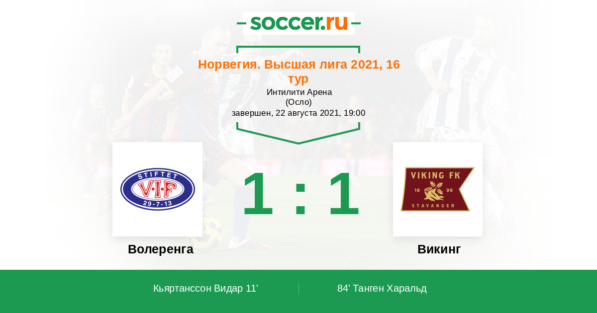 Норвегия. Высшая лига 13.06.2021 Викинг Логотип футбольный клуб Викинг (Ставангер) 4:1 Логотип футбольный клуб Волеренга (Осло) Волеренга