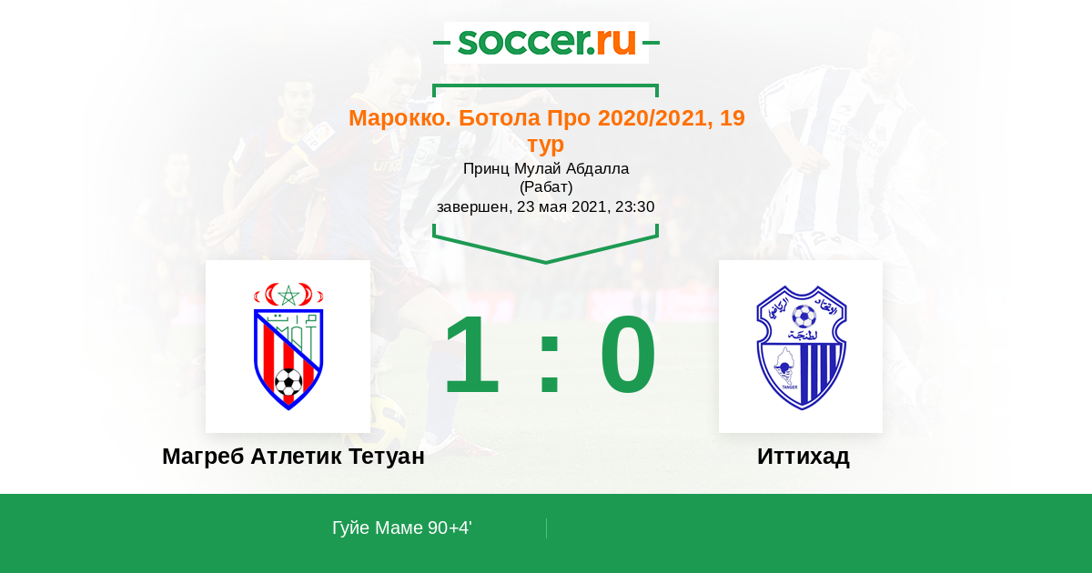 Марокко. Ботола Про 30.09.2020 ИР Анже Логотип футбольный клуб ИР Анже (Танжер) 1:0 Логотип футбольный клуб Магреб Атлетик Тетуан Магреб Атлетик Тетуан