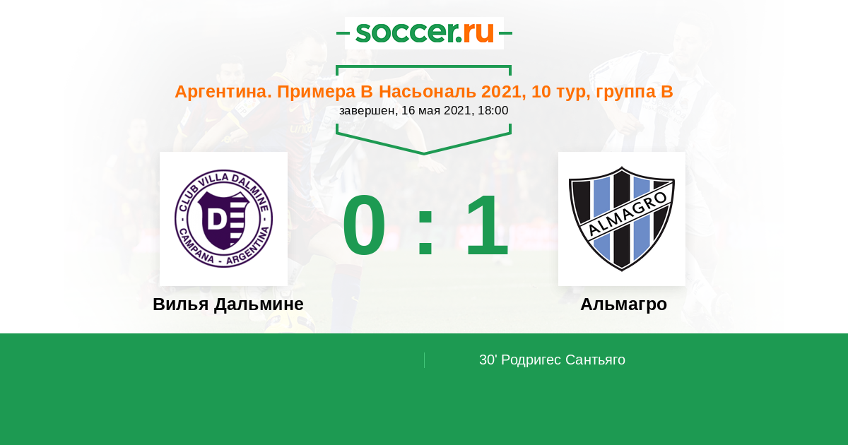 Аргентина. Примера Б Насьональ 21.05.2016 Вилья Дальмине Логотип футбольный клуб Вилья Дальмине (Кампана) 1:0 Логотип футбольный клуб Альмагро (Буэнос-Айрес) Альмагро