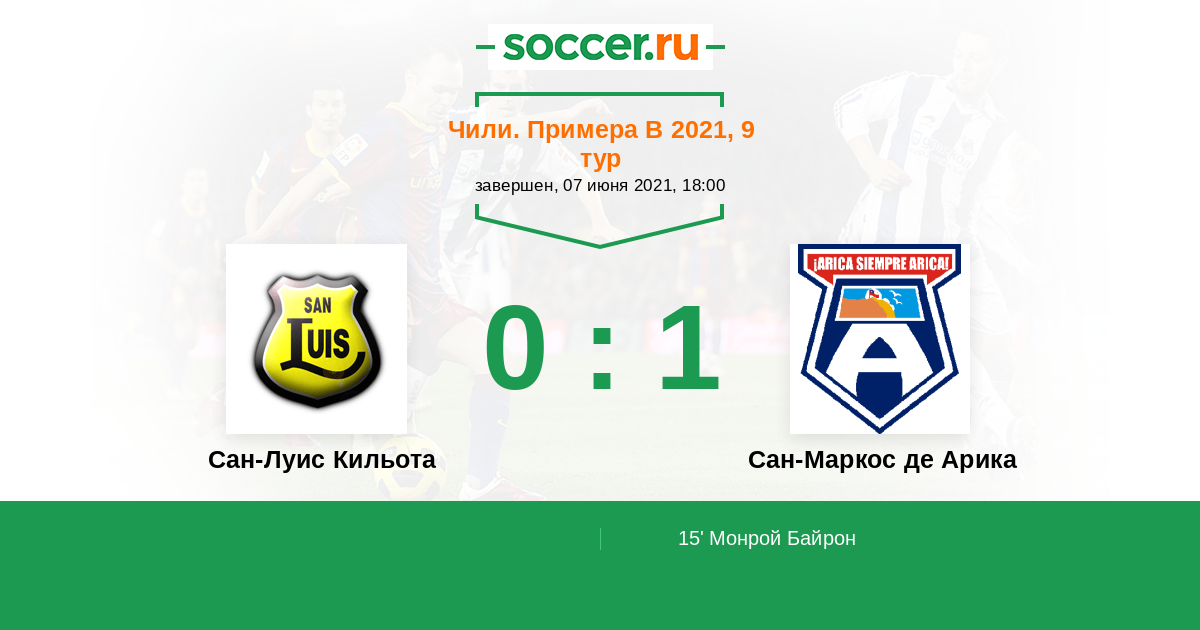 Чили. Примера В 09.10.2021 Сан-Маркос де Арика Логотип футбольный клуб Сан-Маркос де Арика 1:2 Логотип футбольный клуб Сан-Луис Кильота Сан-Луис Кильота
