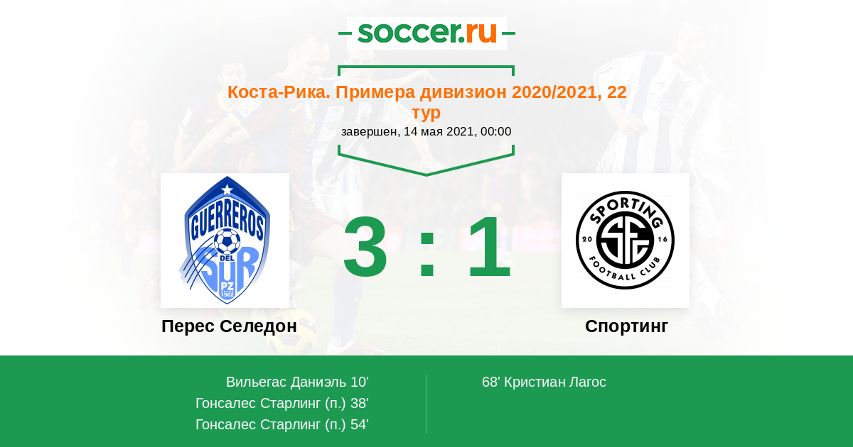 Коста-Рика. Примера дивизион 24.11.2021 Зеледон Логотип футбольный клуб Зеледон (Сан Исидро де Эль Хенерал) 1:0 Логотип футбольный клуб Спортинг Сан-Хосе Спортинг Сан-Хосе