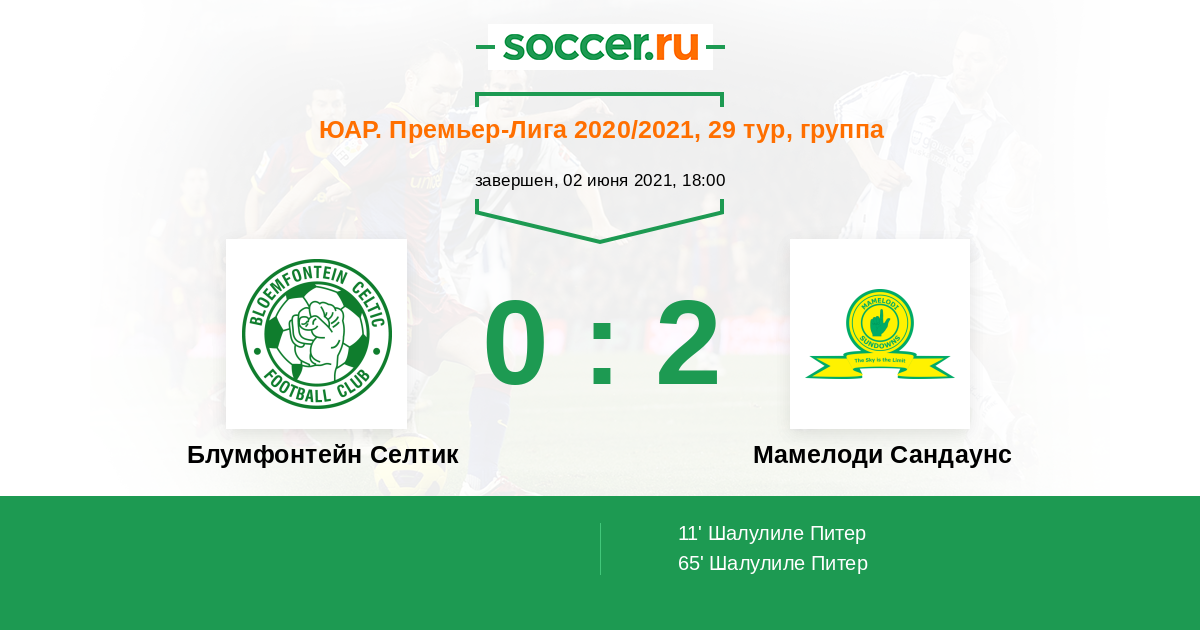 ЮАР. Премьер-Лига 12.05.2018 Блумфонтейн Селтик Логотип футбольный клуб Блумфонтейн Селтик 0:0 Логотип футбольный клуб Мамелоди Сандаунс (Претория) Мамелоди Сандаунс