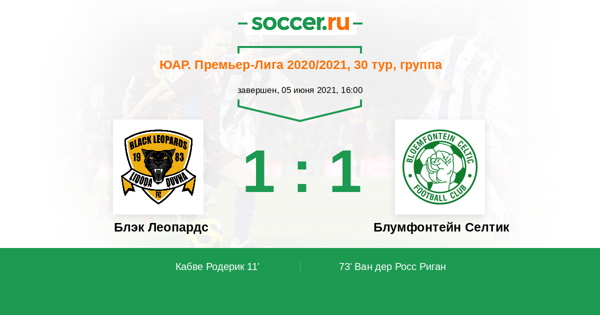 ЮАР. Премьер-Лига 19.12.2012 Блумфонтейн Селтик Логотип футбольный клуб Блумфонтейн Селтик 1:1 Логотип футбольный клуб Блэк Леопардс (Полокване) Блэк Леопардс