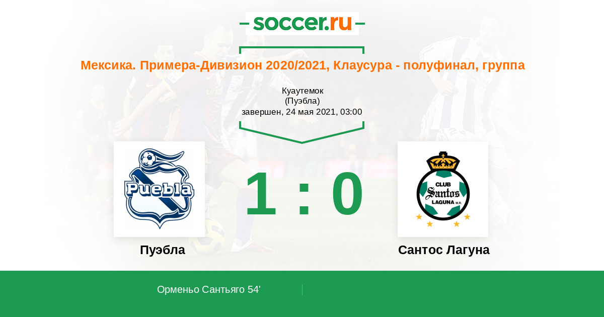 Мексика. Примера-Дивизион 21.05.2021 Сантос Лагуна Логотип футбольный клуб Сантос Лагуна (Торреон) 3:0 Логотип футбольный клуб Пуэбла (Пуэбла-де-Сарагоса) Пуэбла