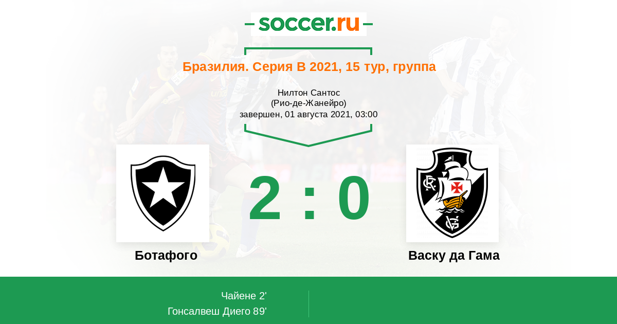 Бразилия. Серия В 07.11.2021 Васку да Гама Логотип футбольный клуб Васку да Гама (Рио-де-Жанейро) 0:4 Логотип футбольный клуб Ботафого (Рио-де-Жанейро) Ботафого