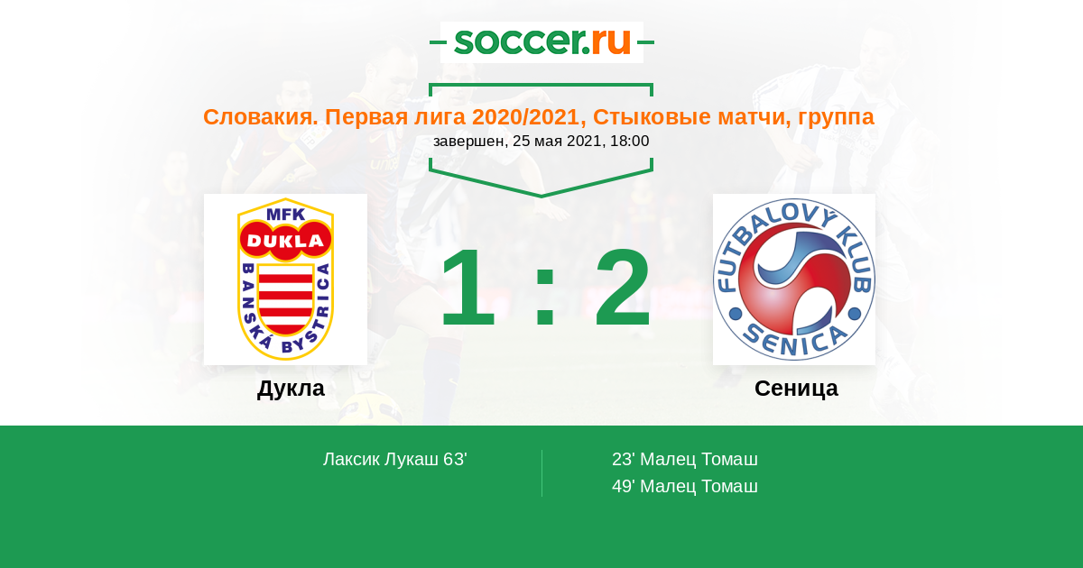 Словакия. Суперлига 06.10.2012 Дукла Логотип футбольный клуб Дукла (Банска-Бистрица) 1:2 Логотип футбольный клуб Сеница Сеница