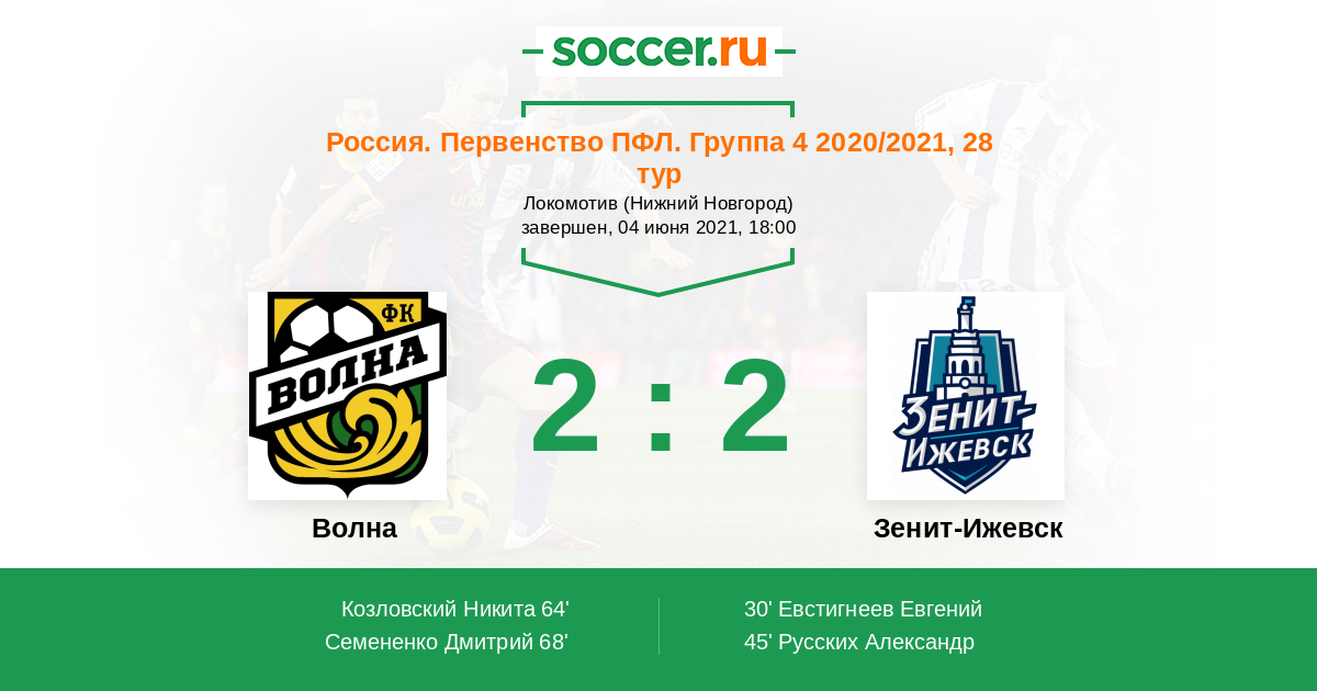Россия. Вторая лига. Группа 4 25.10.2020 Зенит-Ижевск Логотип футбольный клуб Зенит-Ижевск 1:3 Логотип футбольный клуб Волна (Ковернино) Волна