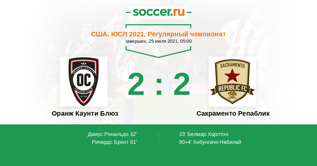 США. ЮСЛ 11.07.2021 Сакраменто Репаблик Логотип футбольный клуб Сакраменто Репаблик 0:2 Логотип футбольный клуб Оранж Каунти Блюз (Коста-Меса) Оранж Каунти Блюз