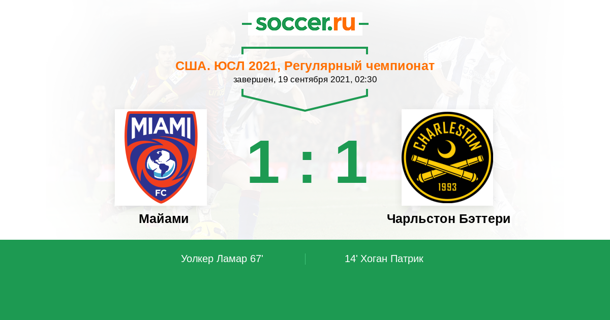 США. ЮСЛ 19.06.2021 Чарльстон Бэттери Логотип футбольный клуб Чарльстон Бэттери 2:1 Логотип футбольный клуб Майами Майами
