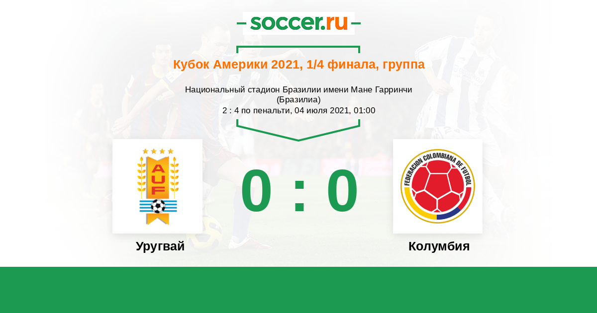 Кубок Америки 11.07.2024 Уругвай Логотип Уругвай 0:1 Логотип Колумбия Колумбия