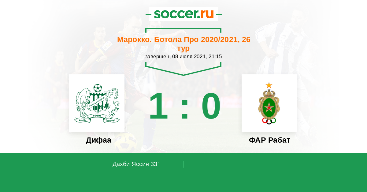 Марокко. Ботола Про 09.04.2021 ФАР Рабат Логотип футбольный клуб ФАР Рабат 1:0 Логотип футбольный клуб Дифаа (Эль-Жадида) Дифаа
