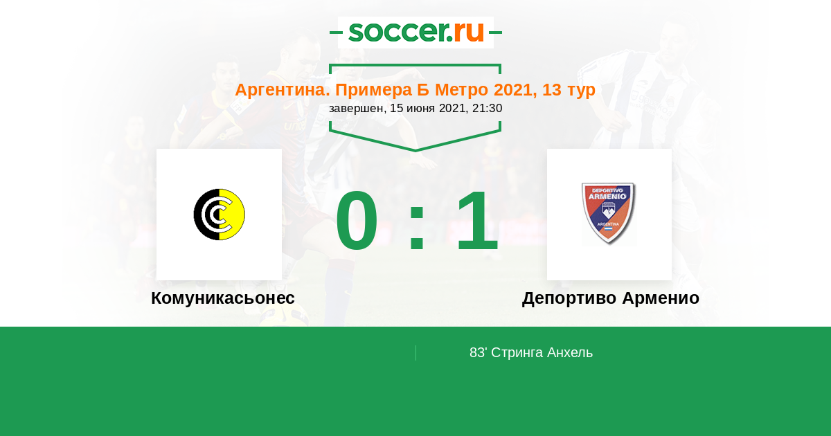 Аргентина. Примера Б Метро 28.05.2022 Депортиво Арменио Логотип футбольный клуб Депортиво Арменио 0:2 Логотип футбольный клуб Комуникасьонес (Буэнос-Айрес) Комуникасьонес