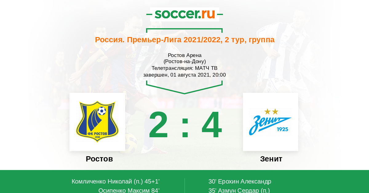 Россия. Премьер-Лига 20.07.2025 Зенит Логотип футбольный клуб Зенит (Санкт-Петербург) 2:1 Логотип футбольный клуб Ростов (Ростов-на-Дону) Ростов