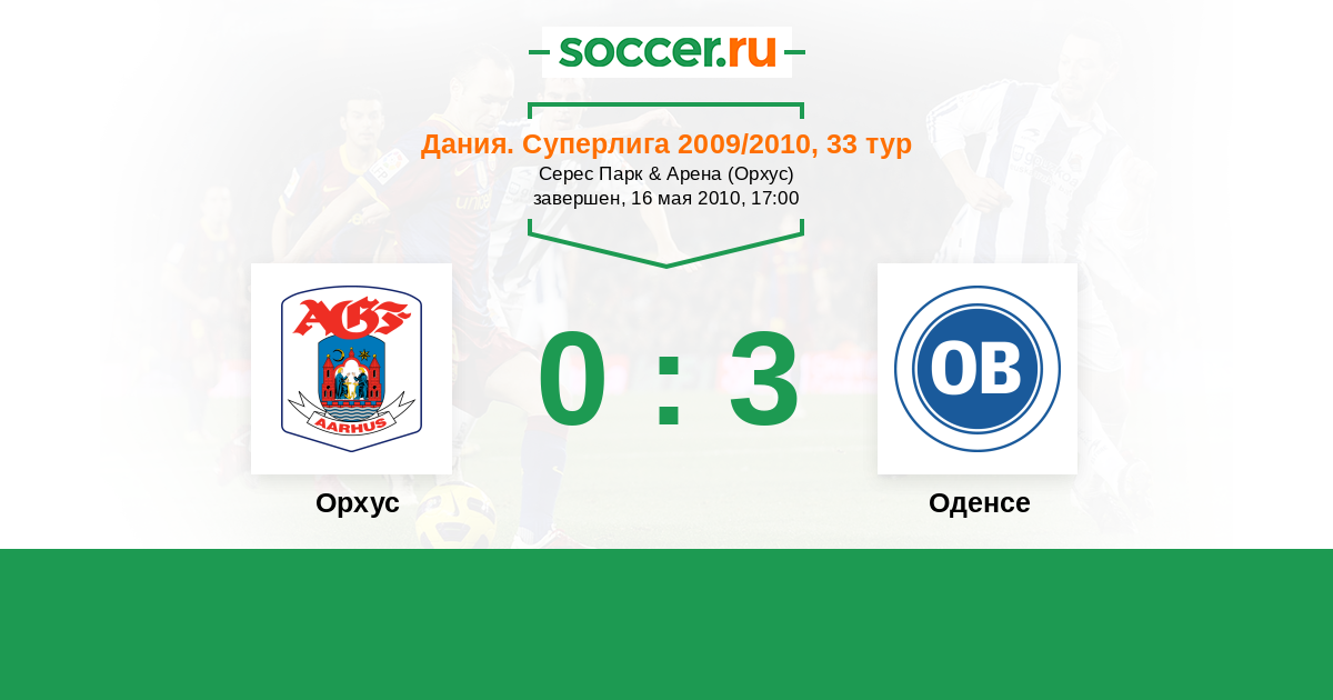 Дания. Суперлига 21.03.2010 Оденсе Логотип футбольный клуб Оденсе 2:0 Логотип футбольный клуб Орхус Орхус