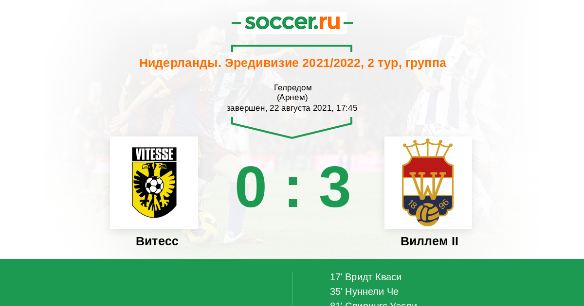 Нидерланды. Эредивизи 21.03.2021 Витесс Логотип футбольный клуб Витесс (Арнем) 0:0 Логотип футбольный клуб Виллем II (Тилбург) Виллем II