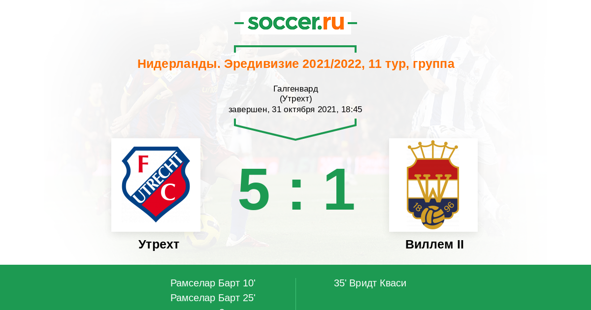 Нидерланды. Эредивизи 03.11.2012 Виллем II Логотип футбольный клуб Виллем II (Тилбург) 1:5 Логотип футбольный клуб Утрехт Утрехт