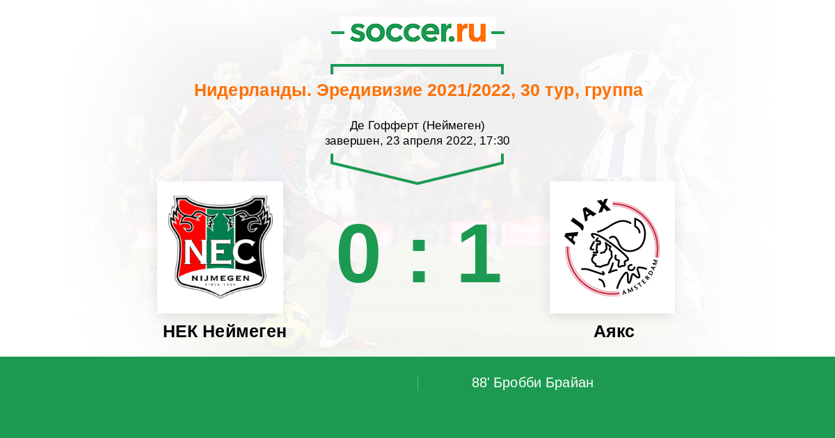 Нидерланды. Эредивизи 05.03.2023 Аякс Логотип футбольный клуб Аякс (Амстердам) 1:0 Логотип футбольный клуб НЕК Неймеген НЕК Неймеген