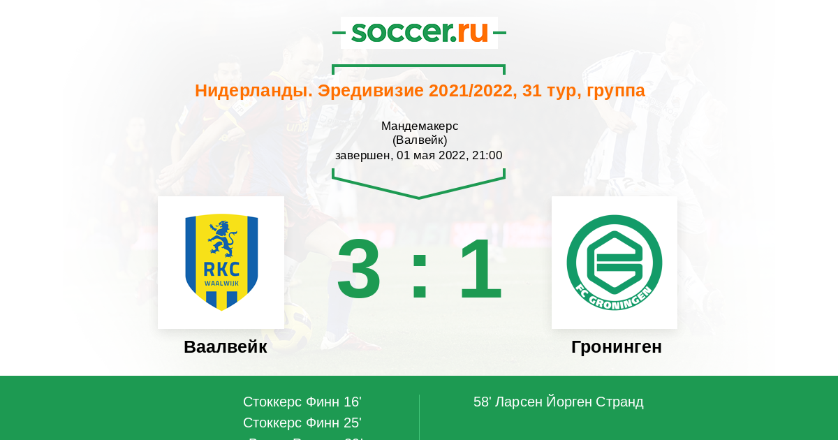 Нидерланды. Эредивизи 20.03.2021 Ваалвейк Логотип футбольный клуб Ваалвейк (Валвейк) 3:1 Логотип футбольный клуб Гронинген Гронинген