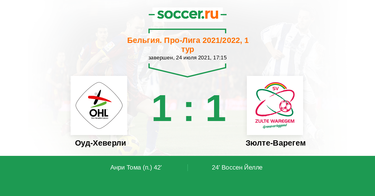Бельгия. Про-Лига 26.01.2022 Зюлте-Варегем Логотип футбольный клуб Зюлте-Варегем 1:1 Логотип футбольный клуб Оуд-Хеверли (Левен) Оуд-Хеверли