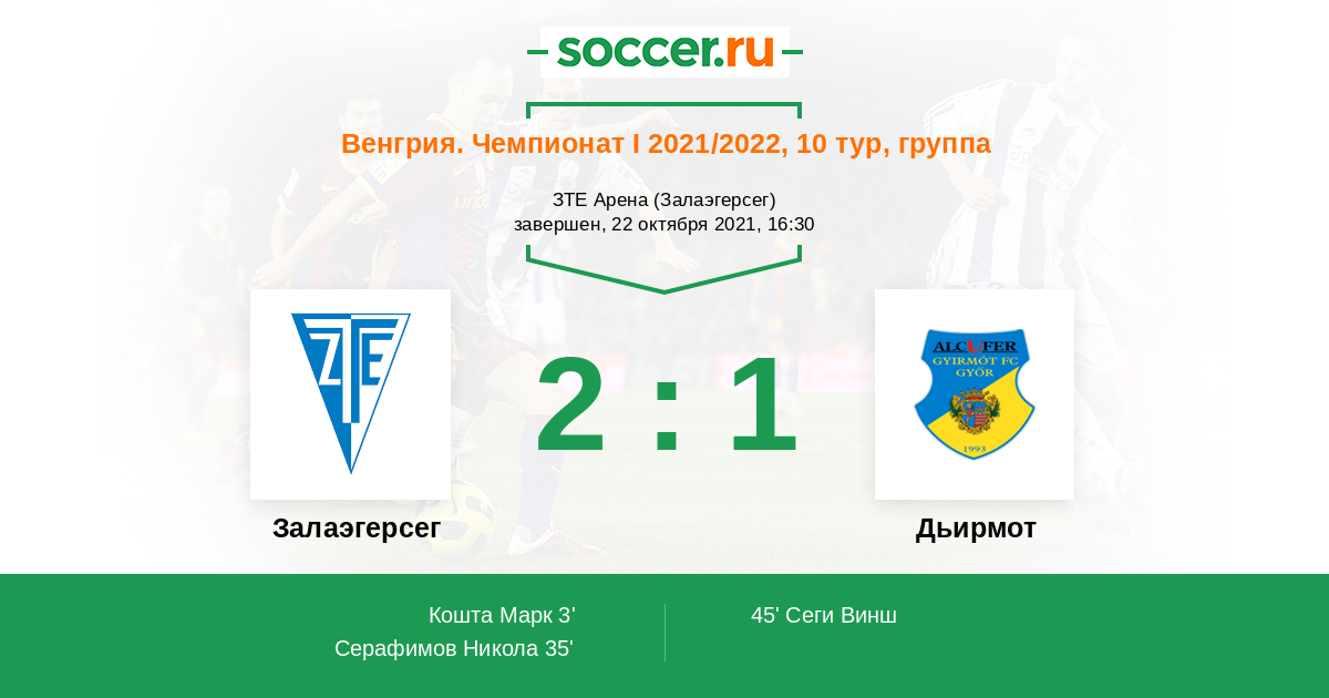 Венгрия. Чемпионат II 10.03.2013 Дьирмот Логотип футбольный клуб Дьирмот (Дьёр) 2:1 Логотип футбольный клуб Залаэгерсег Залаэгерсег