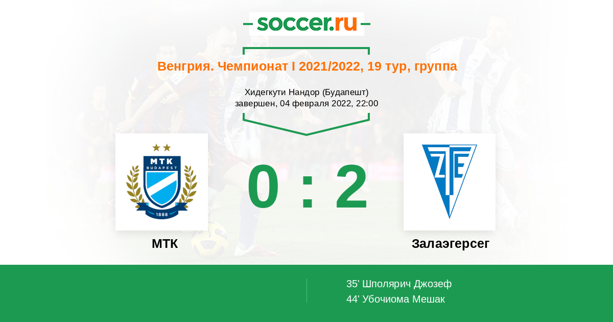 Венгрия. Чемпионат 1 03.10.2021 Залаэгерсег Логотип футбольный клуб Залаэгерсег 2:0 Логотип футбольный клуб МТК (Будапешт) МТК
