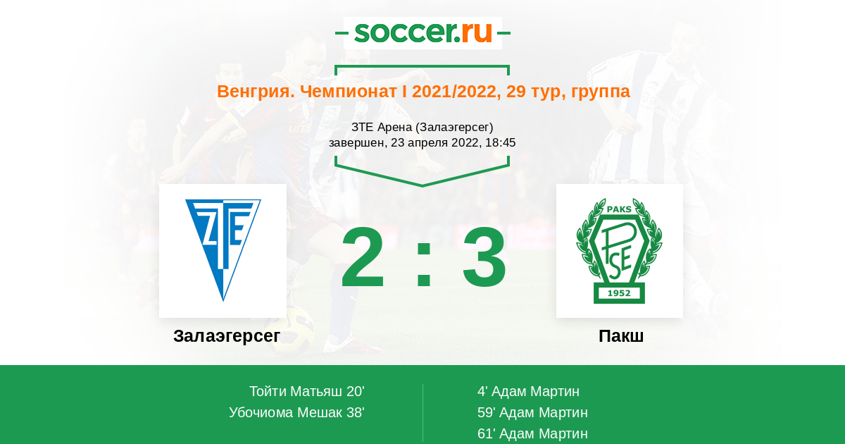 Венгрия. Чемпионат 1 04.03.2023 Пакш Логотип футбольный клуб Пакш 3:1 Логотип футбольный клуб Залаэгерсег Залаэгерсег