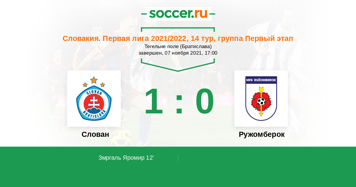 Словакия. Суперлига 13.11.2022 Слован Логотип футбольный клуб Слован (Братислава) 2:0 Логотип футбольный клуб Ружомберок Ружомберок