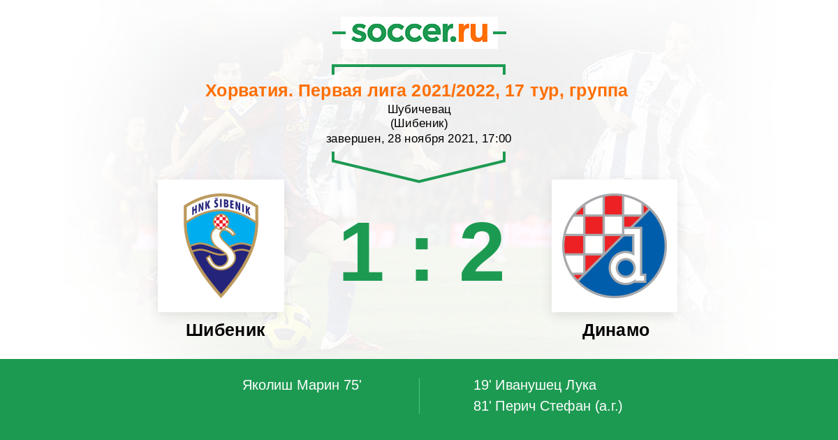 Хорватия. Первая лига 11.09.2021 Динамо Логотип футбольный клуб Динамо (Загреб) 2:0 Логотип футбольный клуб Шибеник Шибеник
