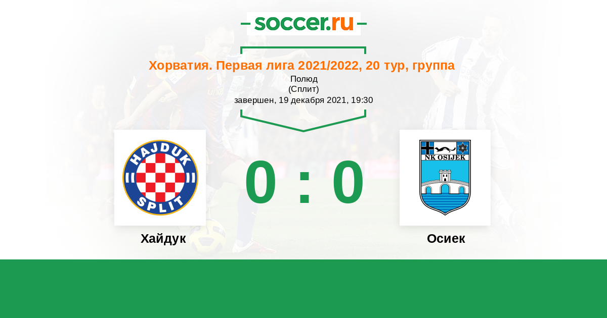 Хорватия. Первая лига 03.04.2022 Осиек Логотип футбольный клуб Осиек 0:0 Логотип футбольный клуб Хайдук (Сплит) Хайдук