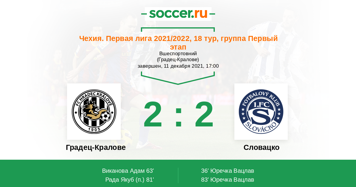 Чехия. Первая Лига 15.08.2021 Словацко Логотип футбольный клуб Словацко (Угерске-Градиште) 1:0 Логотип футбольный клуб Градец-Кралове Градец-Кралове