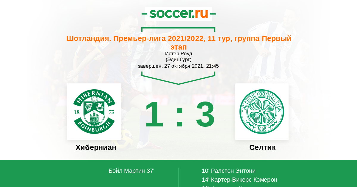Шотландия. Премьер-Лига 17.01.2022 Селтик Логотип футбольный клуб Селтик (Глазго) 2:0 Логотип футбольный клуб Хиберниан (Эдинбург) Хиберниан