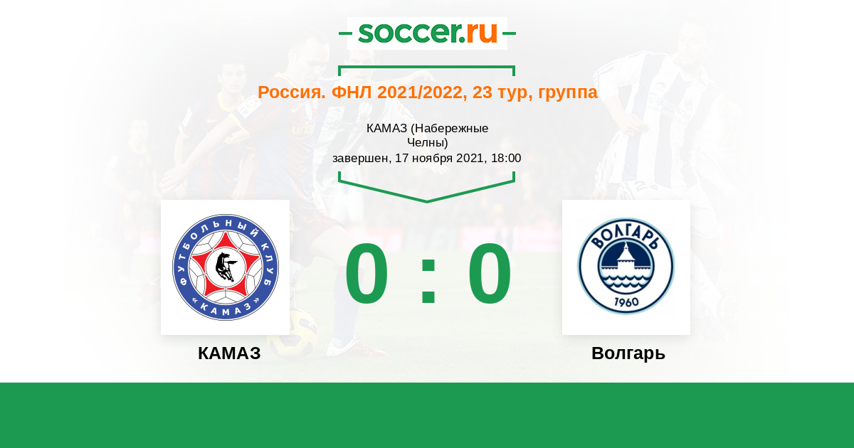 Россия. Первая лига 15.11.2015 КАМАЗ Логотип футбольный клуб КАМАЗ (Набережные Челны) 0:3 Логотип футбольный клуб Волгарь (Астрахань) Волгарь