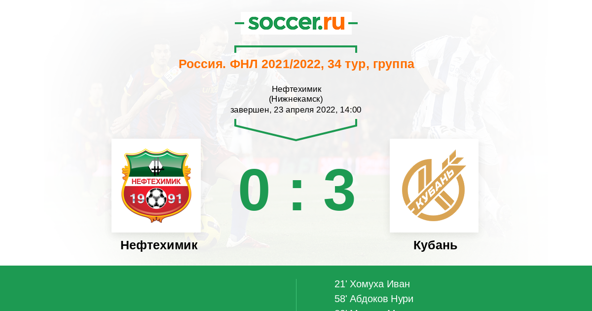 Я думаю что в этом противостоянии более чем явного фаворита на победу нет . Хоть команда хозяев поля Нефтехимик и находится на восьмом месте, но команда гостей Кубань набрала очень хороший ход и в прошлой игре на выезде разгромила лидера ФНЛ на их поле . Думая что и в этом матче они смогут отобрать очки у хозяев поля. Ничья или победа гостей. ✌️