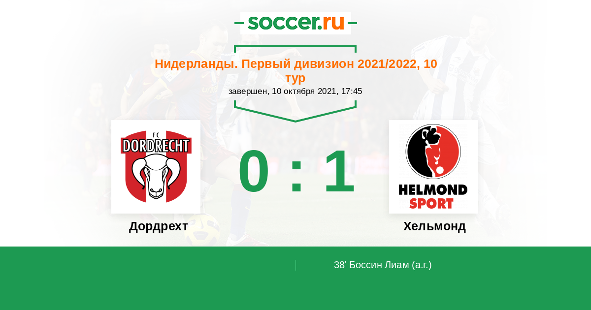 Нидерланды. Первый дивизион 09.04.2010 Дордрехт Логотип футбольный клуб Дордрехт 0:1 Логотип футбольный клуб Хельмонд Хельмонд