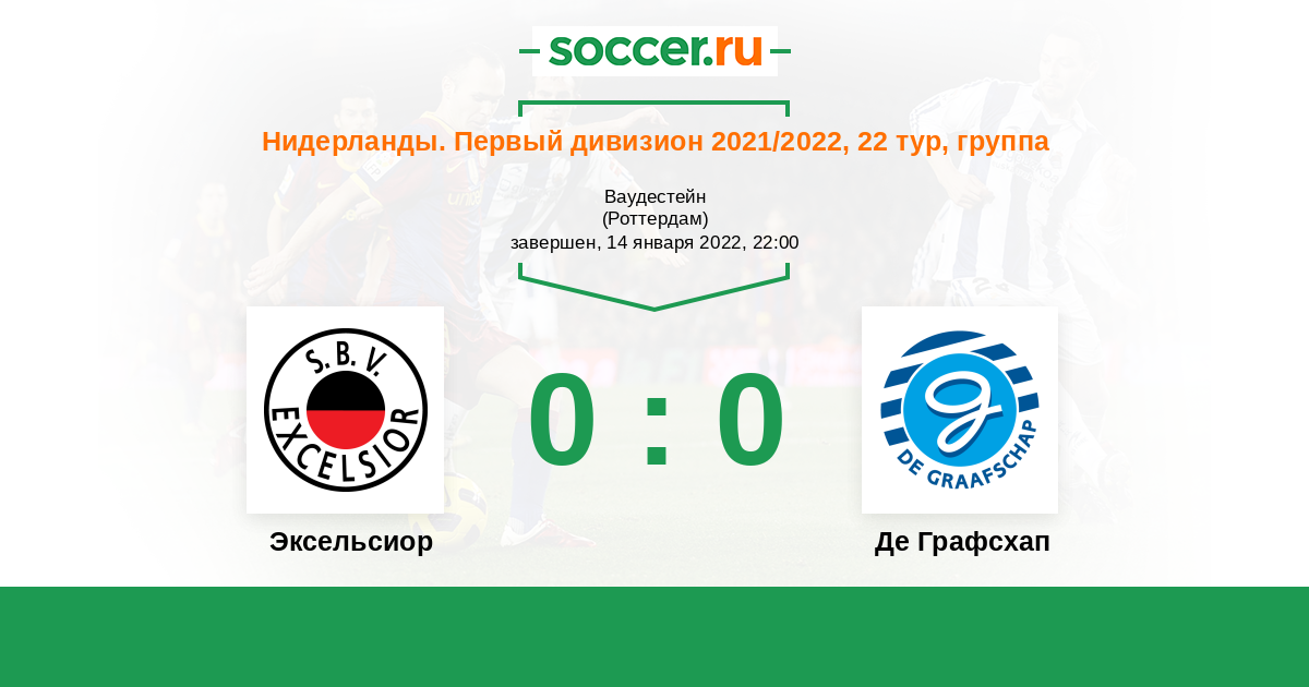 Нидерланды. Первый дивизион 19.03.2021 Де Графсхап Логотип футбольный клуб Де Графсхап (Дутинхем) 1:1 Логотип футбольный клуб Эксельсиор (Роттердам) Эксельсиор